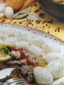 Budete potřebovat: kilogram kapra, 70 g másla či podobného tuku, 500 gramů kořenové zeleniny (celer, kořen petržele, mrkev), jednu cibuli, bobkový list, tymián, celý pepř, nové koření, dvě deci bílého vína, půl litru masového vývaru, lžíce hořčice, lžíce mouky, několik čerstvých hub (v současnosti žampion, hlíva ústřičná) nebo nahradit dobře upravenou jinou sušenou houbou, sůl.