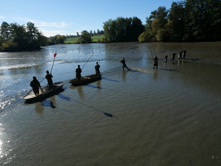 Skupina rybářů rozbalila síť a dotáhla jeden konec do oblouku. Pak chlapi zabrali a stáhli síť ke kádím. Byla tam další várka menších ryb. Do Boru se dávají malí kapři i další druhy, aby povyrostli. Po slovení a roztřídění putují na chovné rybníky třeba v okolí Žimutic, kde naše organizace také hospodaří. Tam ryby dorostou na prodejní velikost. Na podzim při výlovech putují na sádky do van a jsou připravované pro zákazníky.